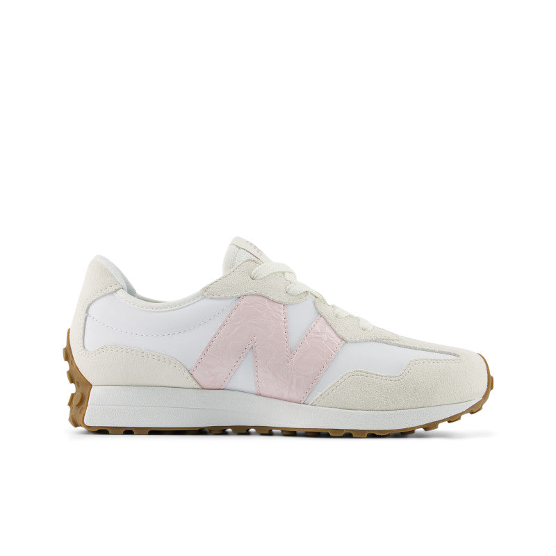 A medida que el running recreativo se popularizaba en la década de 1970, la referencia para el calzado de running pasó de la mera existencia al rendimiento. Aunque los diseños de la época se considerarían sencillos para los estándares actuales, la década destaca como el momento en el que las zapatillas de correr se hicieron realmente un hueco. La 327 arroja nueva luz sobre los años 70 como una época de innovación al remodelar audazmente elementos de diseño clásicos con una perspectiva totalmente contemporánea. Con una reelaboración angular de la silueta de cuña de probada eficacia, la marca "N" asimétrica y de gran tamaño, y una suela envolvente inspirada en los tacos de trail, la 327 ofrece nada menos que una reimaginación completa de nuestra herencia del running. Esta 327 para niños reduce la silueta clásica para pies en crecimiento.
